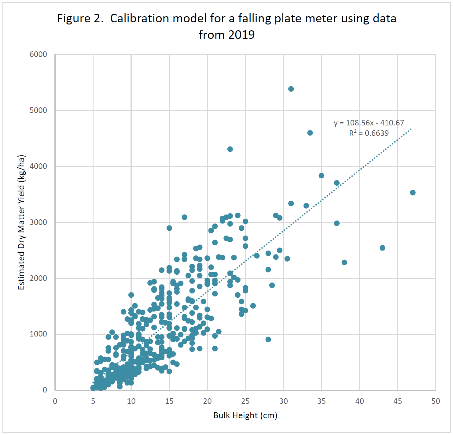 Overall, the correlation between bulk height and cover in Ontario pastures was moderately strong and justifies continuing this project over several growing seasons to develop a calibration model that is robust enough to be accurate under different weather conditions.